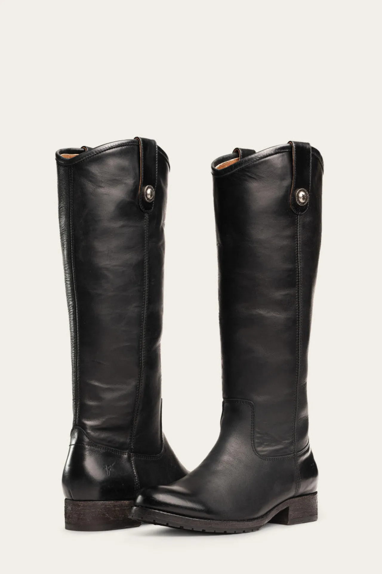 The Melissa equestrian-inspired tall boots are made from hard-wearing leather design. Contoured through the ankle for support and the most flattering shape, they have a modernized topline with newly updated Frye signature button details at the pull tabs providing a tailored look. Slight heel with lug soles